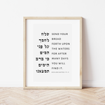 Add depth and meaning to your office / business space with this elegant minimalist print featuring the timeless wisdom of Ecclesiastes 11:1 in both Hebrew and English.