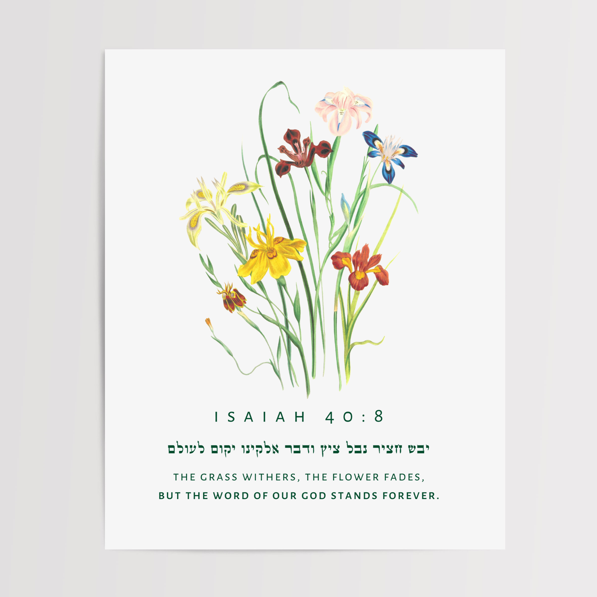 The Verse: Isaiah 40:8, "The grass withers, the flower fades, but the word of our God stands forever."