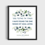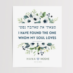Make your wedding gift unforgettable with this personalized wedding art print featuring Song of Songs 3:4 with a stunning floral design. We will customize the gift with the couple's names and wedding date, creating a truly one-of-a-kind keepsake.