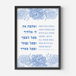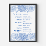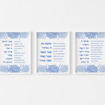 The Jewish Kids Bedroom Wall Art Set - Set of 3 - Blue Floral